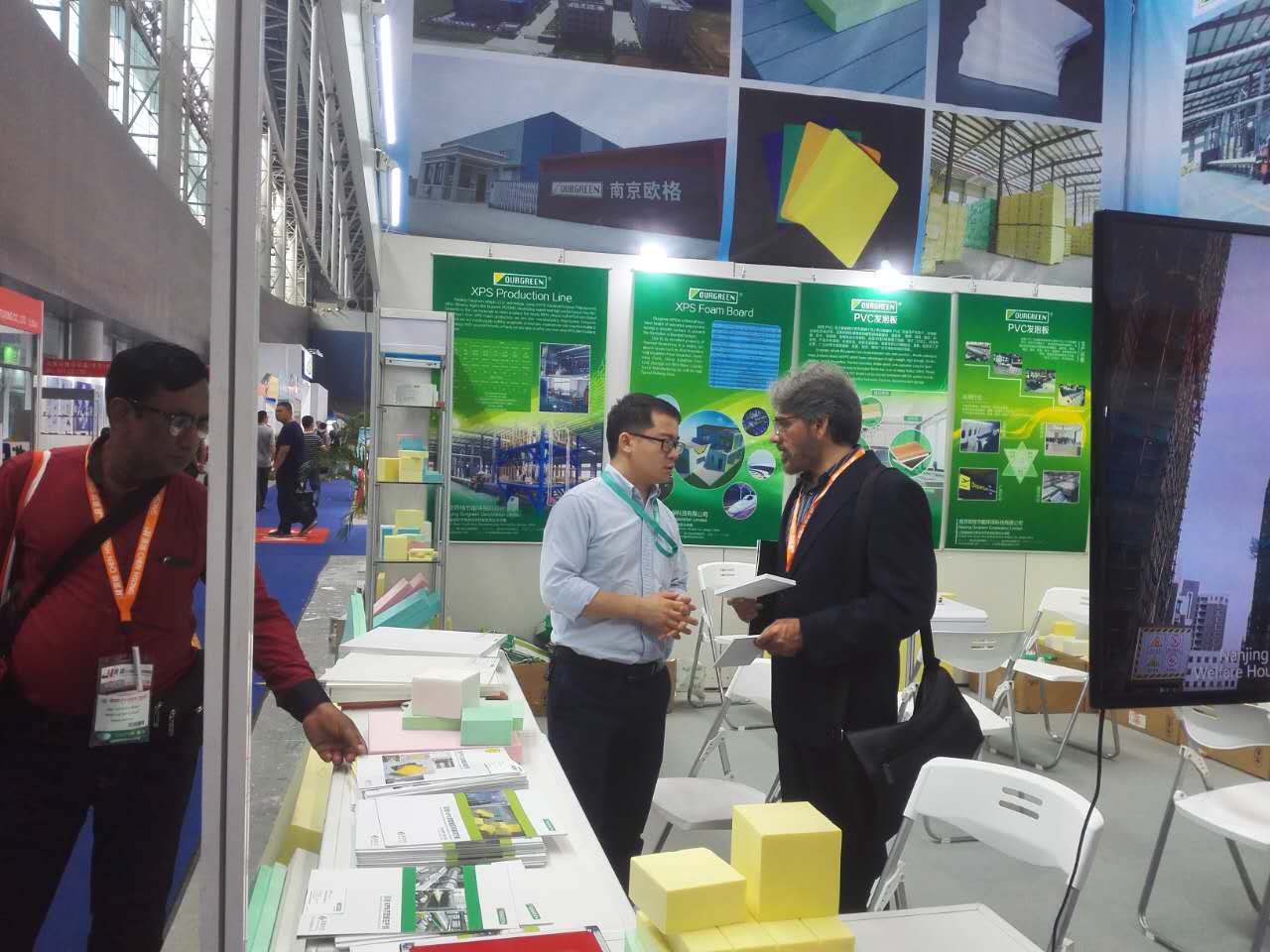 本次展會(huì)更加突出環(huán)保主題,南京歐格生產(chǎn)的擠塑板和PVC發(fā)泡板因?yàn)榫哂协h(huán)保和綠色節(jié)能的特點(diǎn)吸引了前來參觀的國內(nèi)外嘉賓駐足交流,歐格的擠塑板設(shè)備因其優(yōu)秀的生產(chǎn)工藝和穩(wěn)定的產(chǎn)能更是引起了嘉賓們高的關(guān)注度。在與我們做了充分的溝通和了解后紛紛表達(dá)了合作意向,并給我們提出了很多寶貴意見。